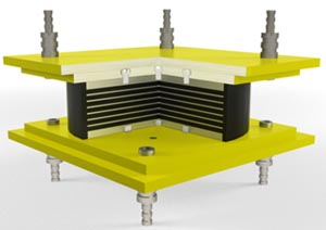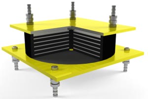 HDR高阻尼隔震橡膠支座按功能形式分為固定型隔震支座和滑動型隔震支座,固定型支座位移通過橡膠剪切變形來實現(xiàn),橡膠的水平剪切能承受較大的水平力,按其連接結構又分為Ⅰ型、Ⅱ型兩種類型,通過高阻尼橡膠在水平方向的大位移剪切變形及滯回耗能實現(xiàn)減隔震功能。
