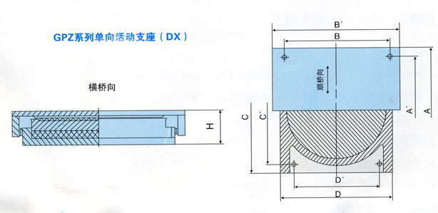 GPZ系列單向活動(dòng)支座(DX型)主要尺寸表