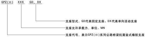 GPZ(Ⅲ)1.25GD 表示承載力1.25MN的GPZ(Ⅲ)型固定抗震盆式橡膠支座
